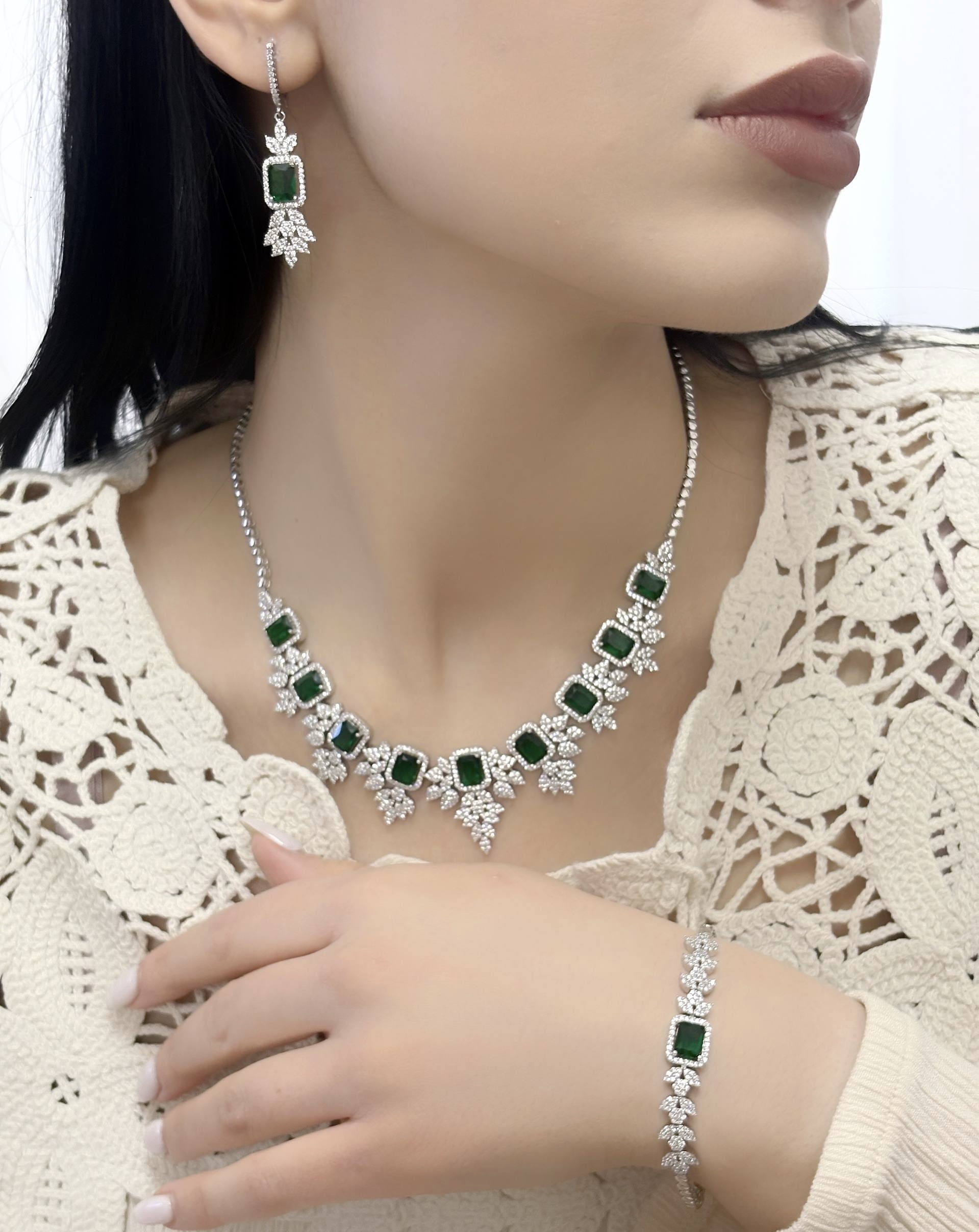 سرویس نقره مجلل زمرد جواهری زنانه کد 60783