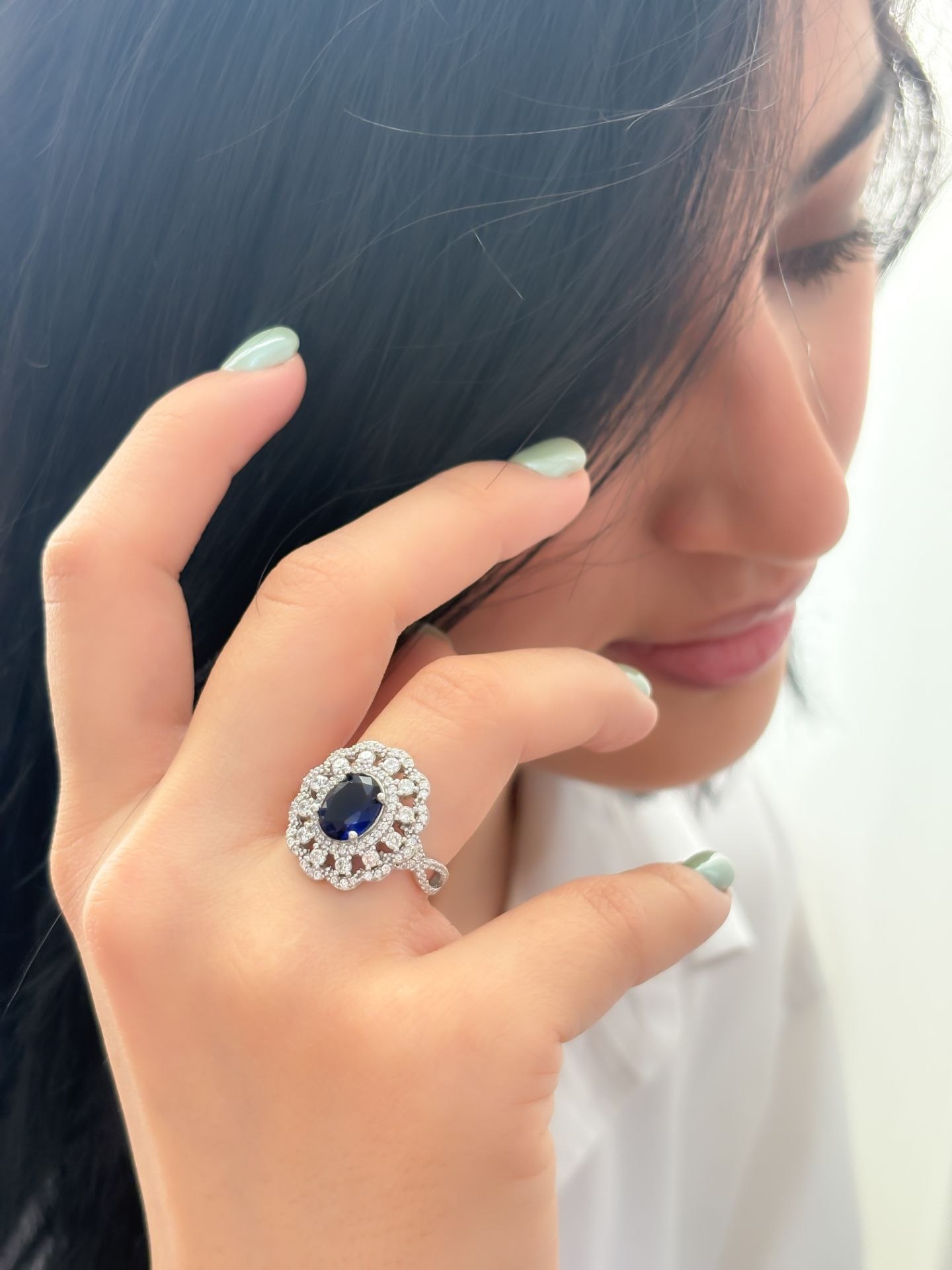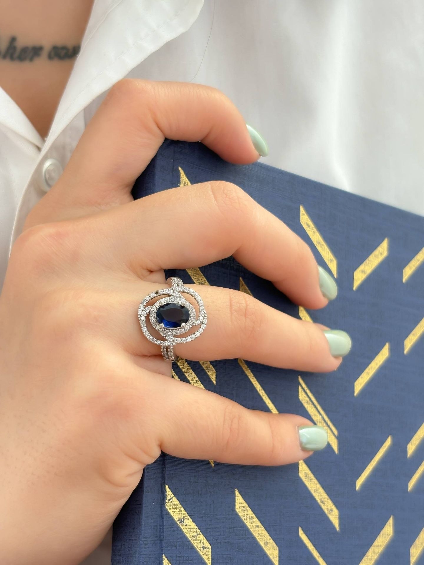 نیمست سلطنتی یاقوت کبود جواهری نقره کد 00656
