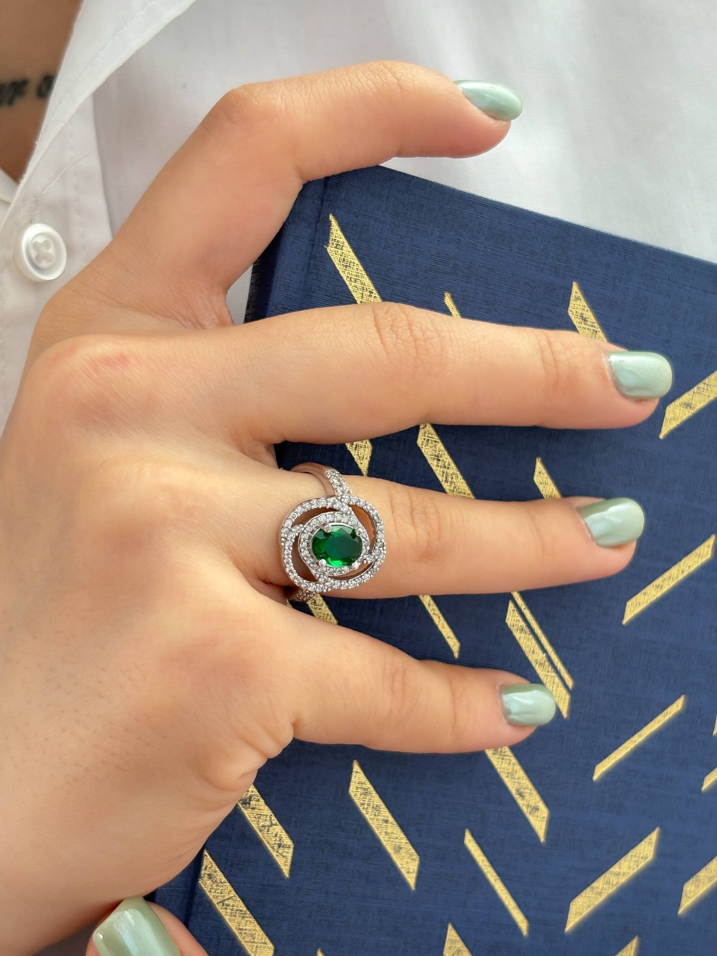 نیمست سلطنتی زمرد جواهری نقره کد 00655