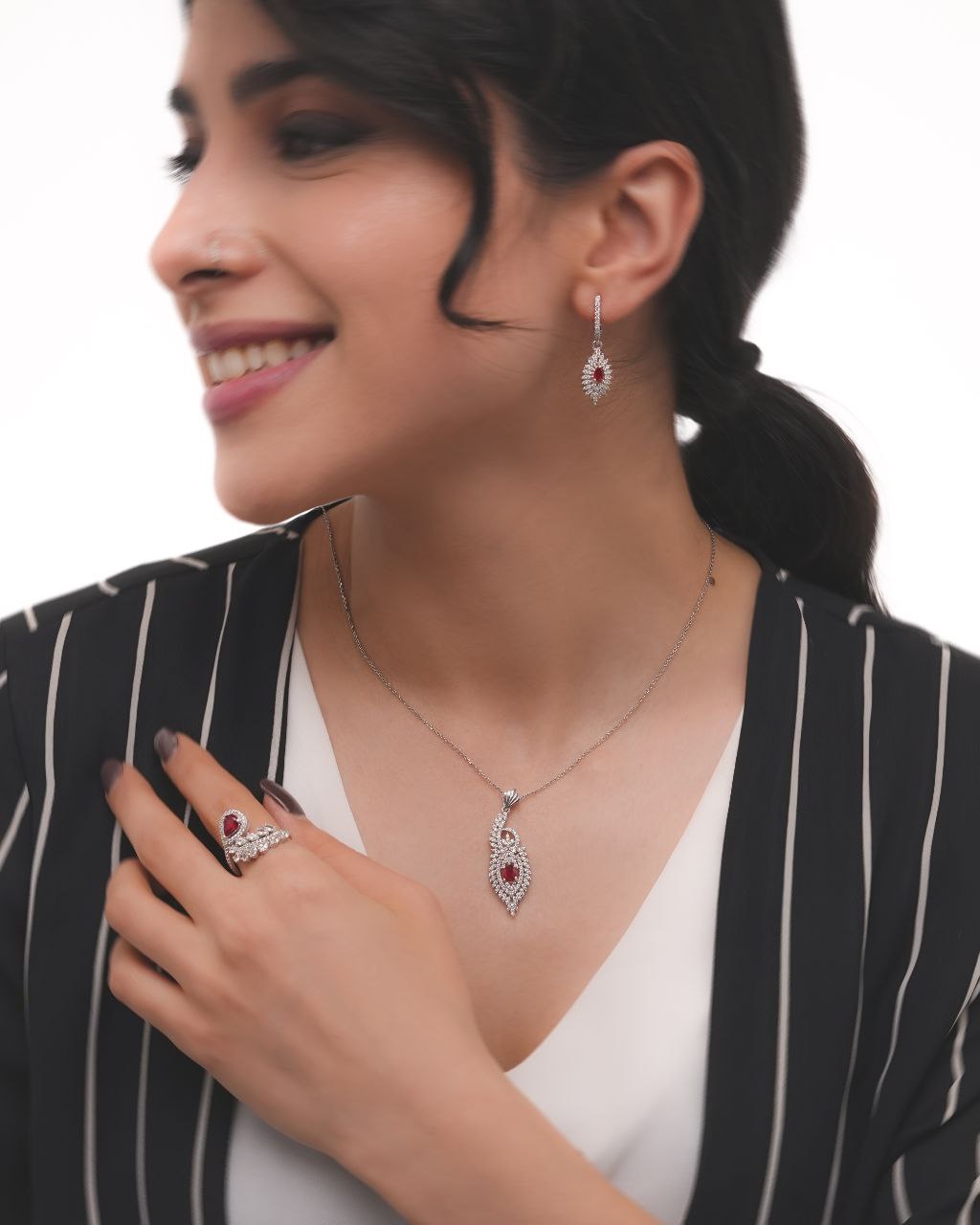 سرویس نقره سلطنتی یاقوت سرخ جواهری زنانه کد 60775