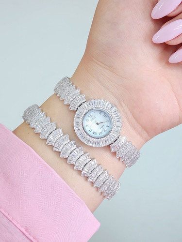 ست ساعت و دستبند نقره جواهری زنانه کد 80137