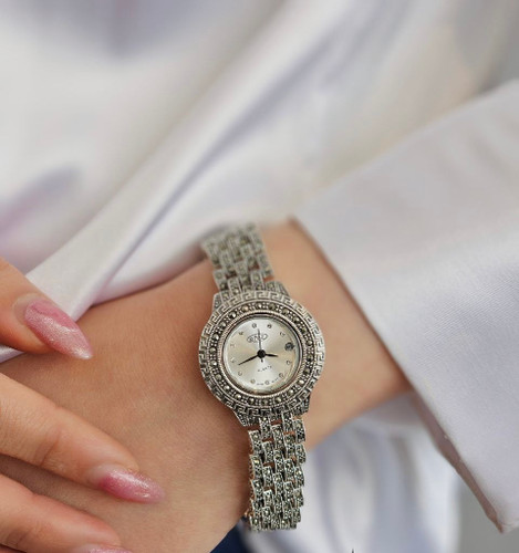 ست ساعت و دستبند نقره جواهری زنانه کد 80135
