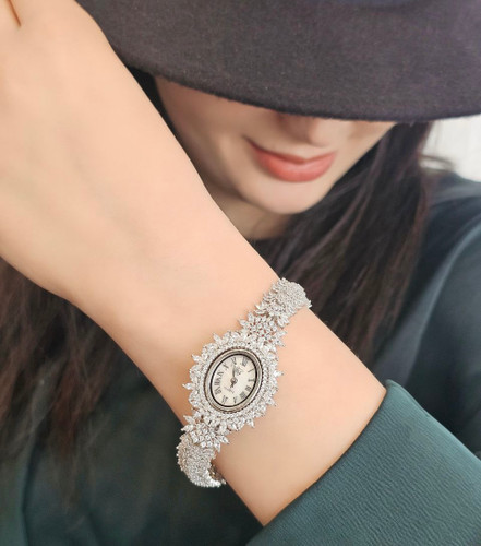 ست ساعت و دستبند نقره جواهری زنانه کد 80134