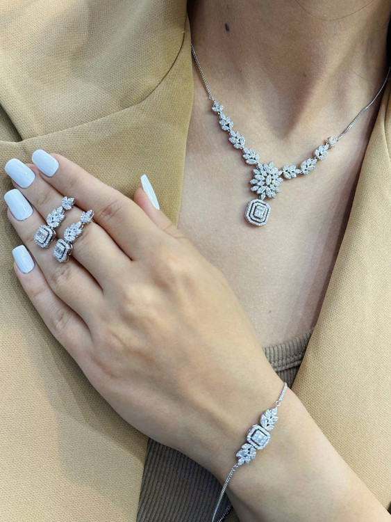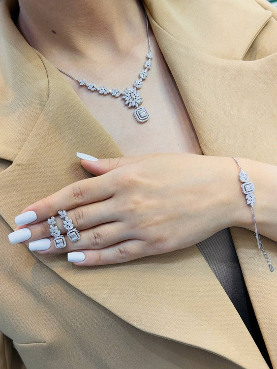 سرویس نقره امرالدکات ایتالیایی جواهری زنانه کد 60141