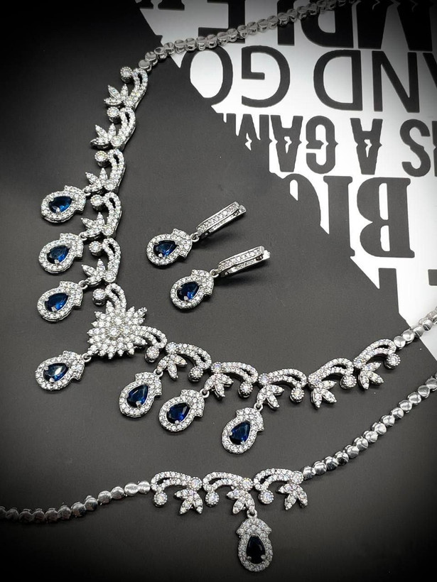 سرویس نقره یاقوت کبود جواهری زنانه کد 60165