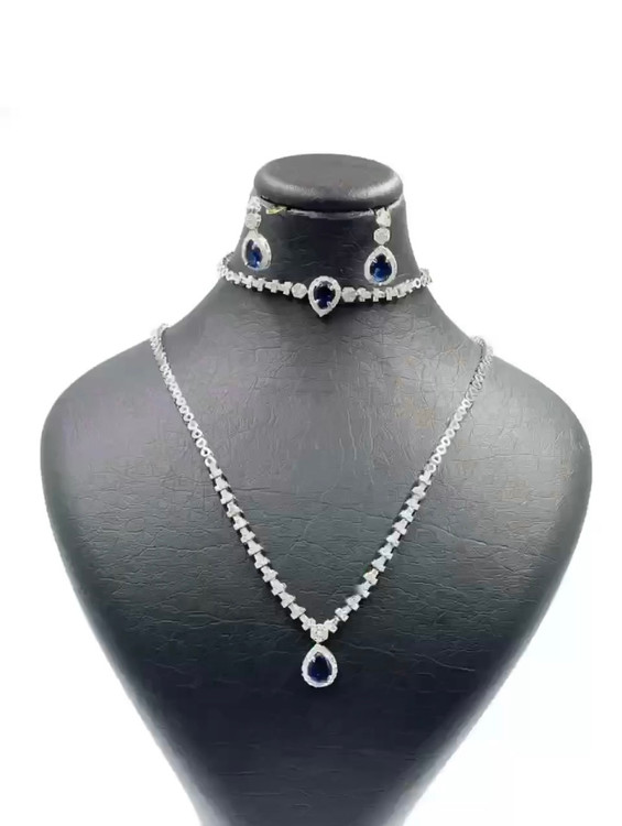 سرویس نقره یاقوت کبود جواهری زنانه کد 60176