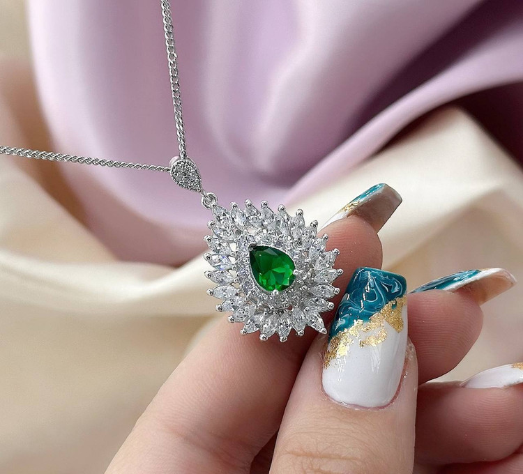 گردنبند زمرد زنانه نقره کد 20153