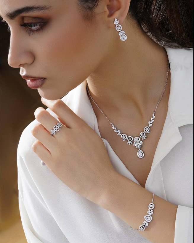 سرویس نقره وارداتی جواهری زنانه کد 60236