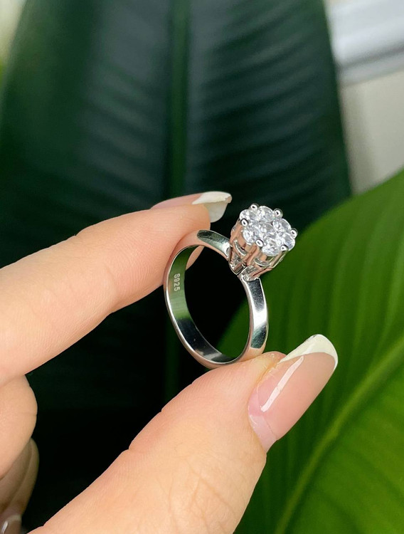 انگشتر فلاور پایه بلند جواهری نقره زنانه کد 10415