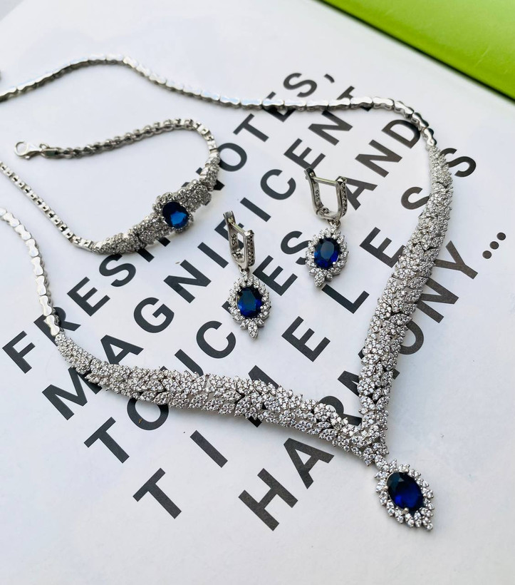 سرویس نقره جواهری زنانه کد 60016