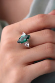 انگشتر جواهری نقره زمرد زنانه کد 10437