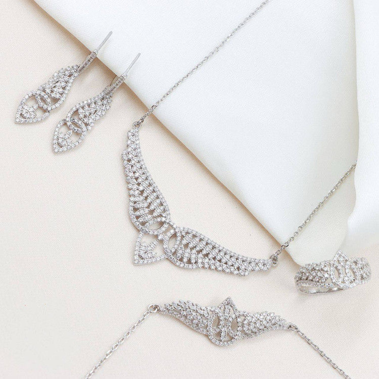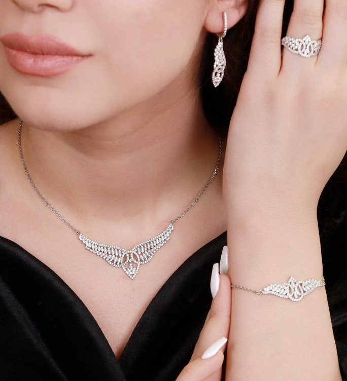 سرویس نقره جواهری زنانه کد 60256