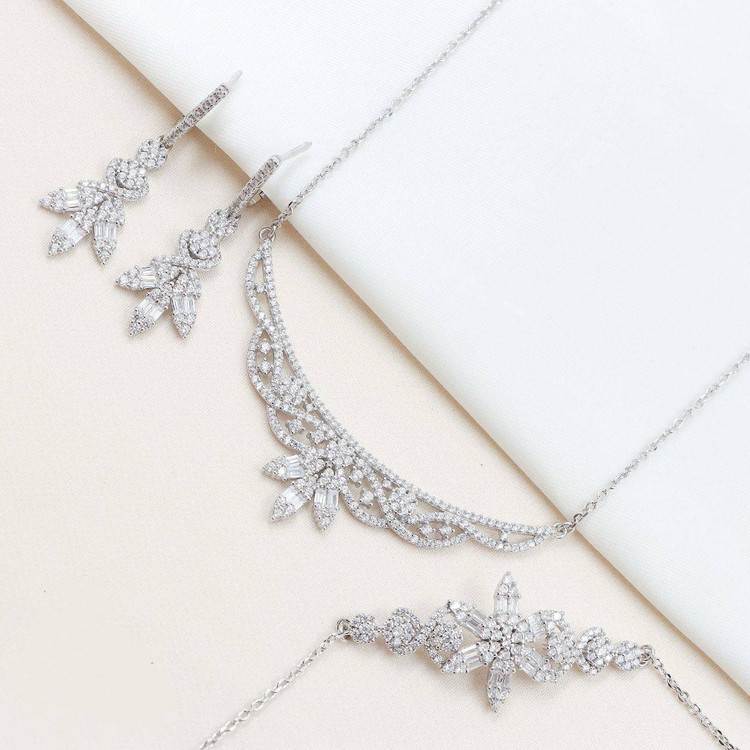 سرویس نقره جواهری زنانه کد 60257