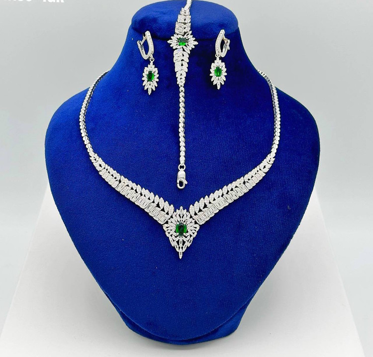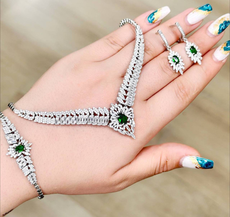 سرویس نقره زمرد جواهری زنانه کد 60278