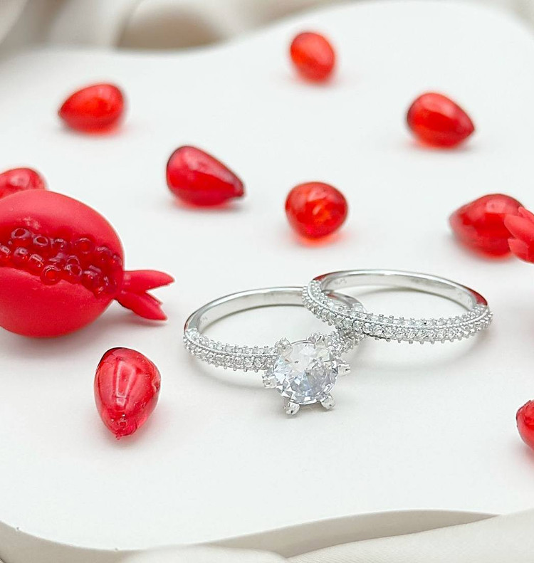 حلقه و پشت حلقه ای جواهری نقره زنانه کد 10488