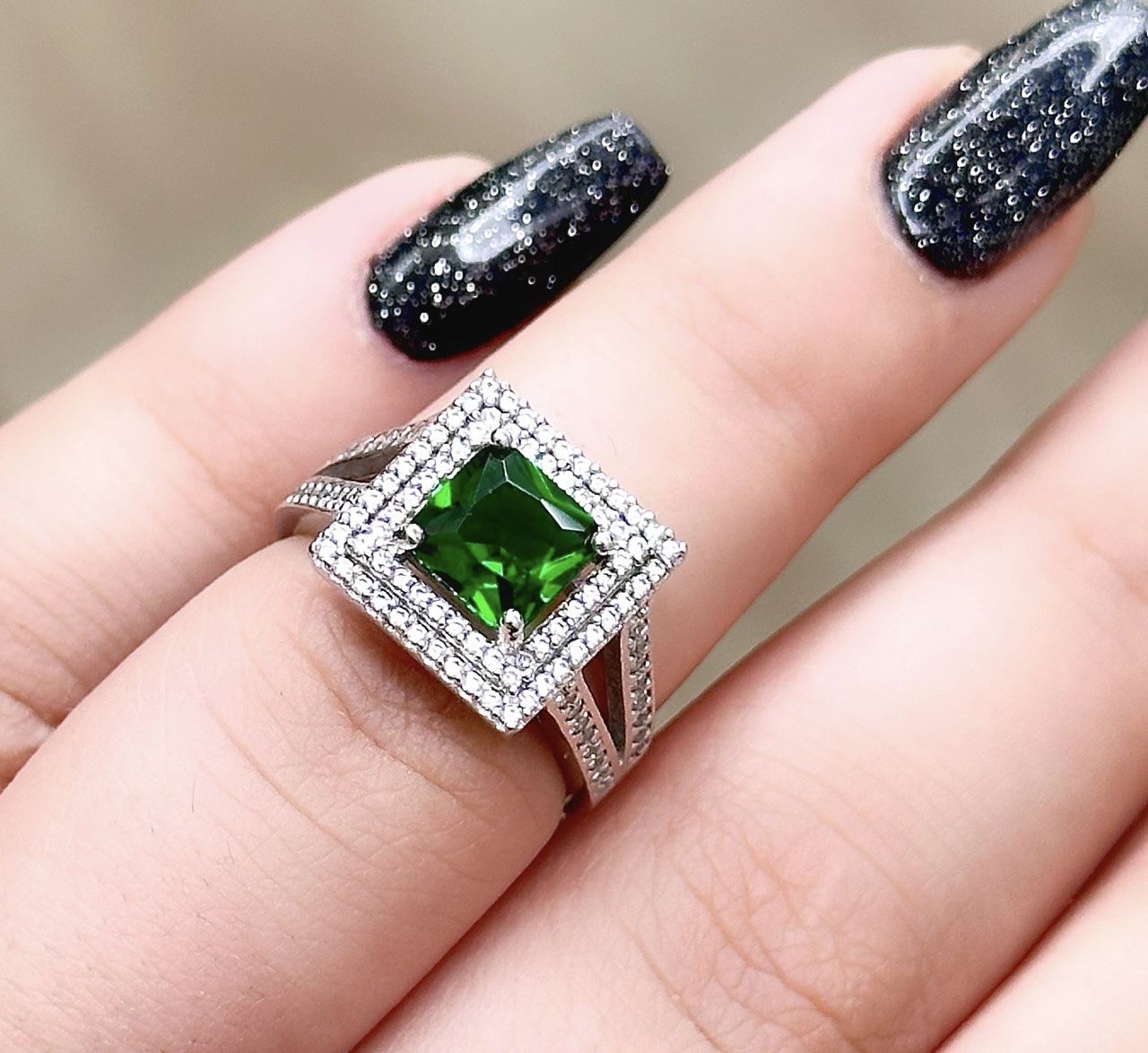 انگشتر زمرد جواهری نقره زنانه کد 10514