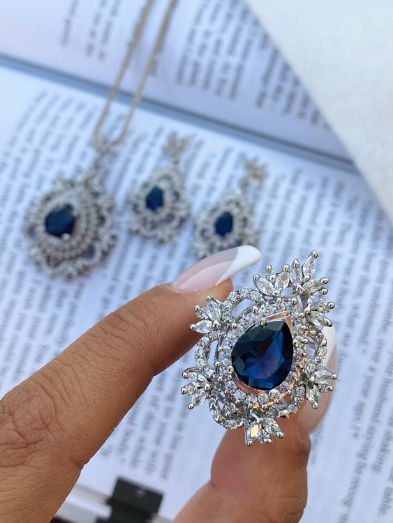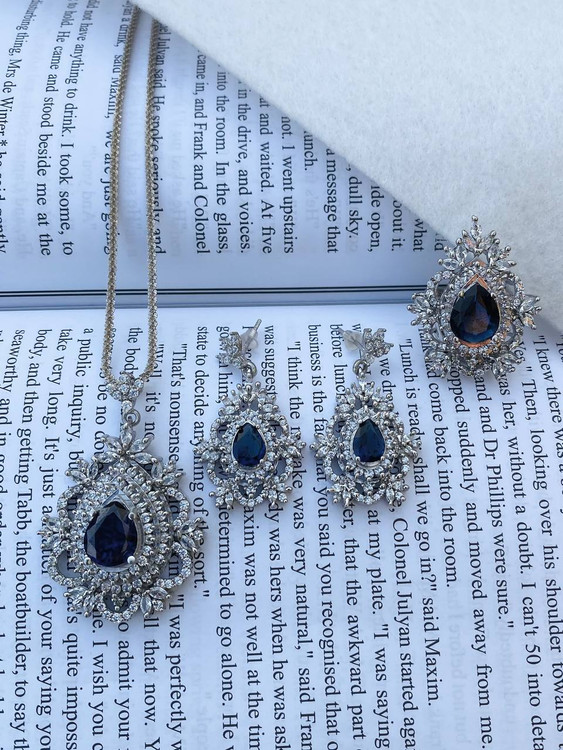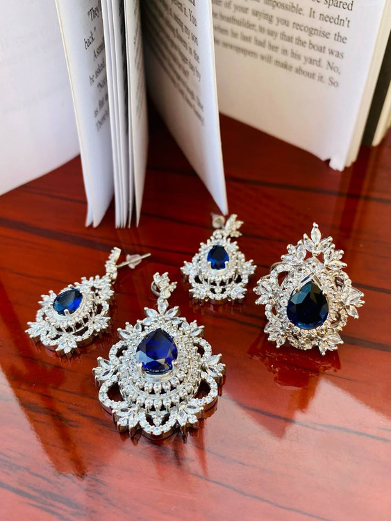 نیمست با سنگ یاقوت کبود همراه با نگین های اتمی