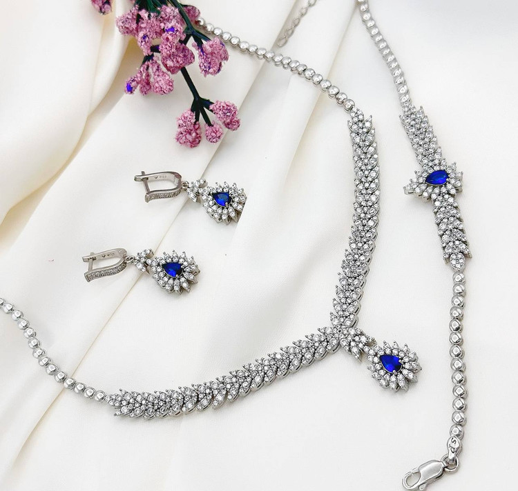 سرویس یاقوت کبود نقره جواهری زنانه کد 60319