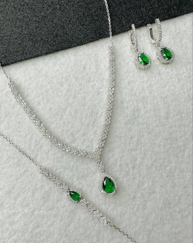 سرویس زمرد نقره جواهری زنانه کد 60322