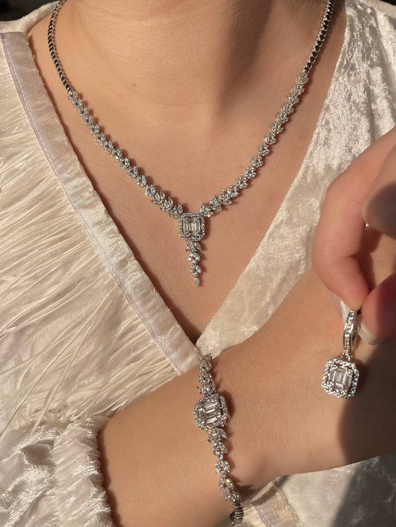 سرویس نقره امرالدکات جواهری زنانه کد 60336