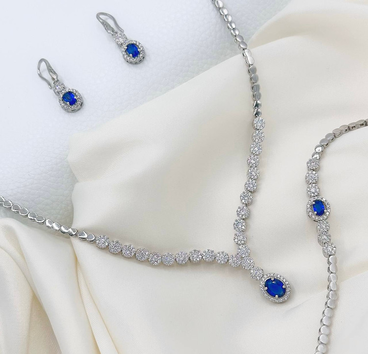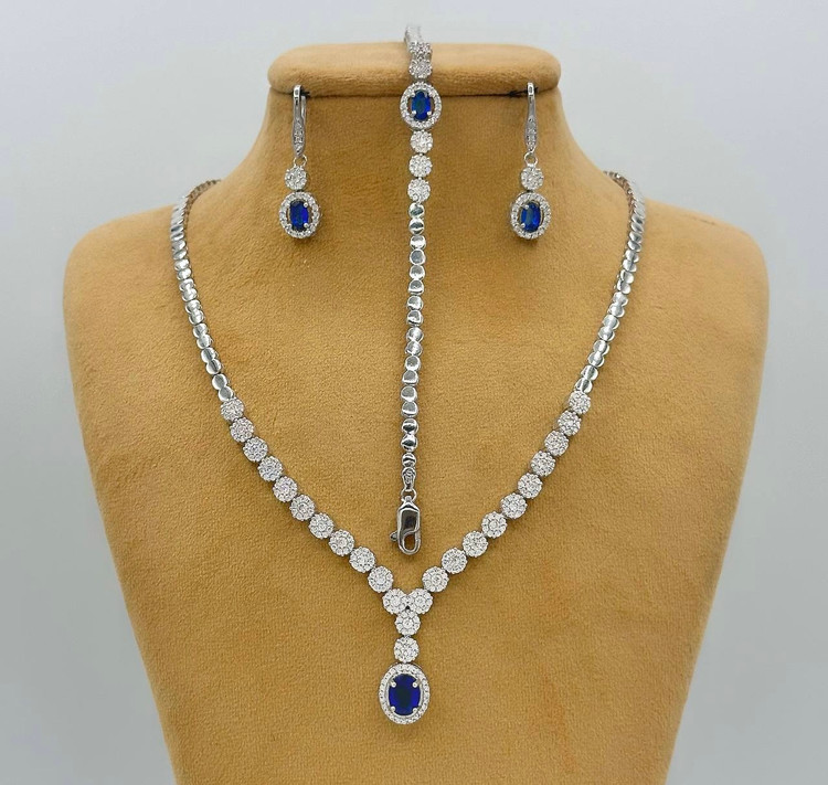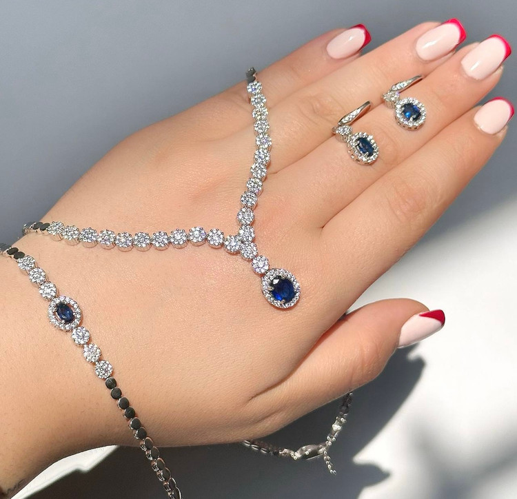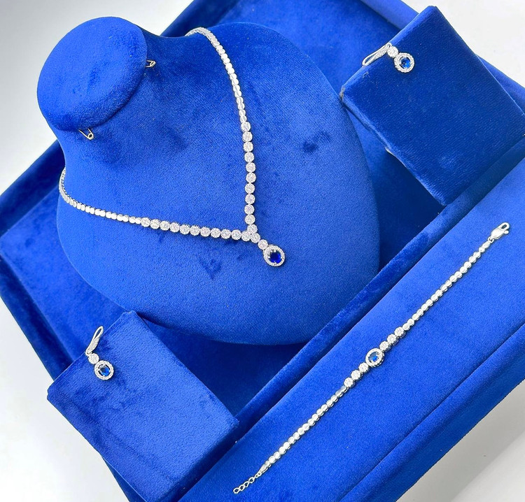 سرویس نقره یاقوت کبود جواهری زنانه کد 60345