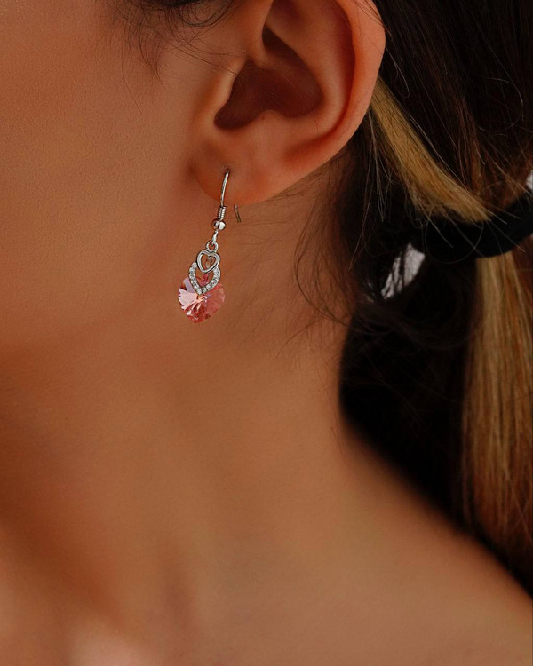 گوشواره سوارسکی قلب وارداتی نقره زنانه کد 087