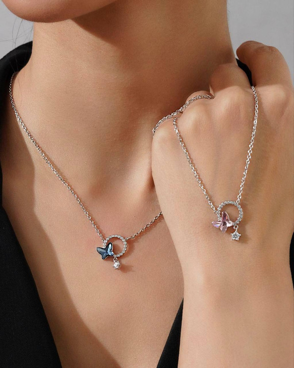 گردنبند سوارسکی وارداتی زنانه نقره کد 20300