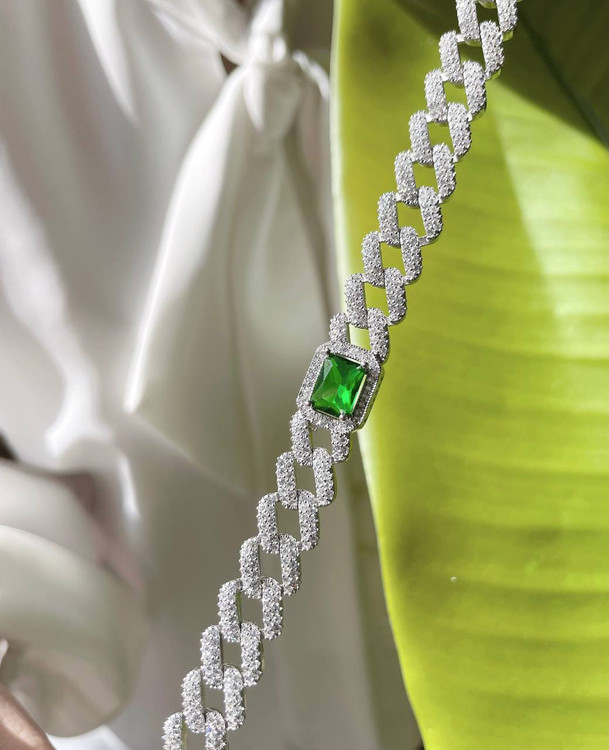 دستبند فول نگین کارتیه زمرد جواهری نقره زنانه کد 30315