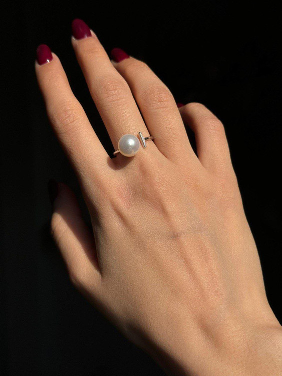 انگشتر وارداتی مرواریدی جواهری نقره زنانه کد 10665