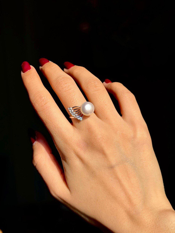 انگشتر وارداتی مرواریدی جواهری نقره زنانه کد 10670