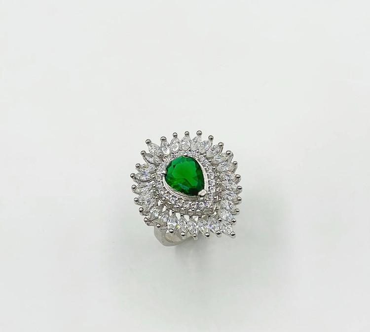 انگشتر زمرد جواهری نقره زنانه کد 10708