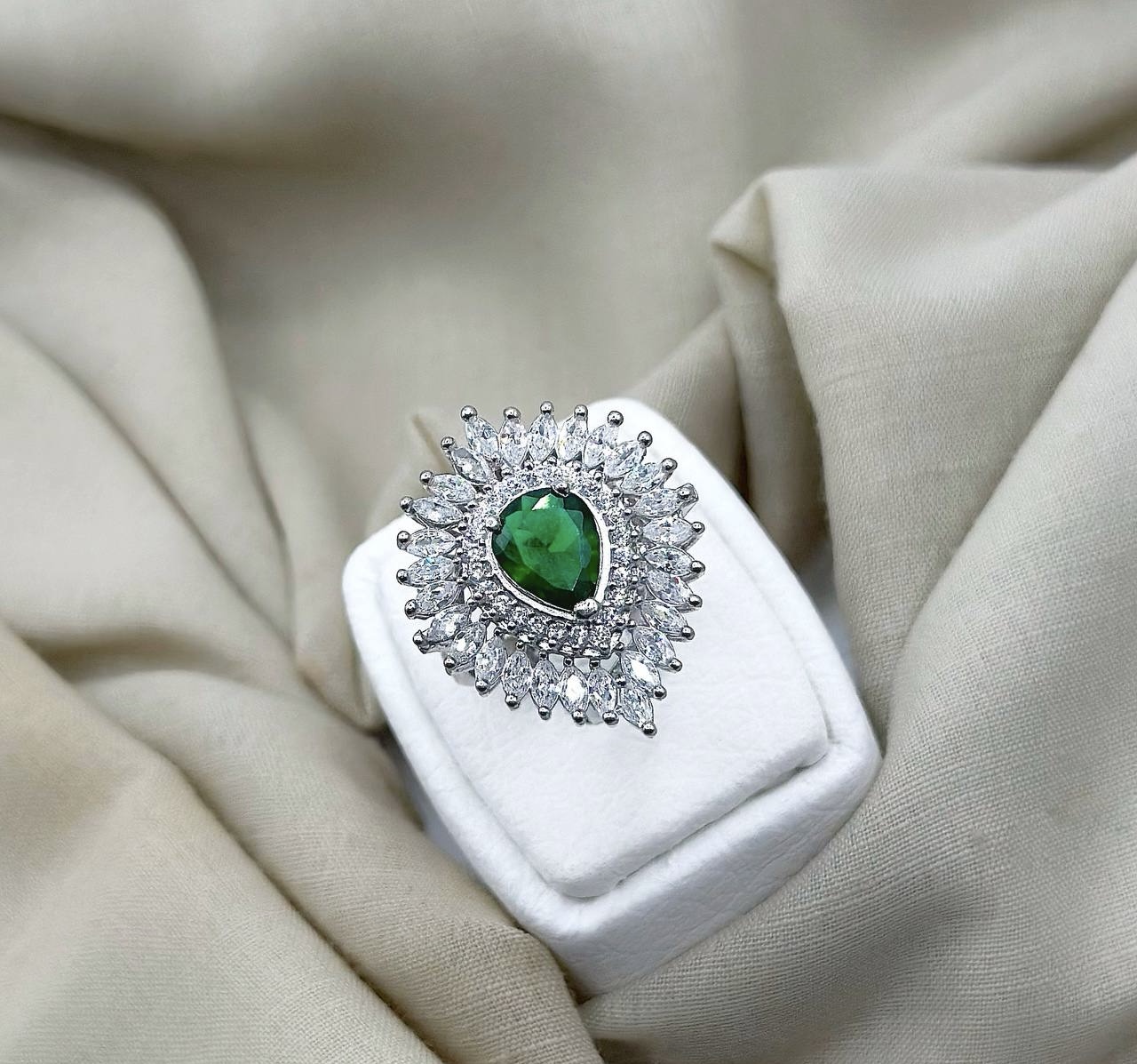 انگشتر زمرد جواهری نقره زنانه کد 10708