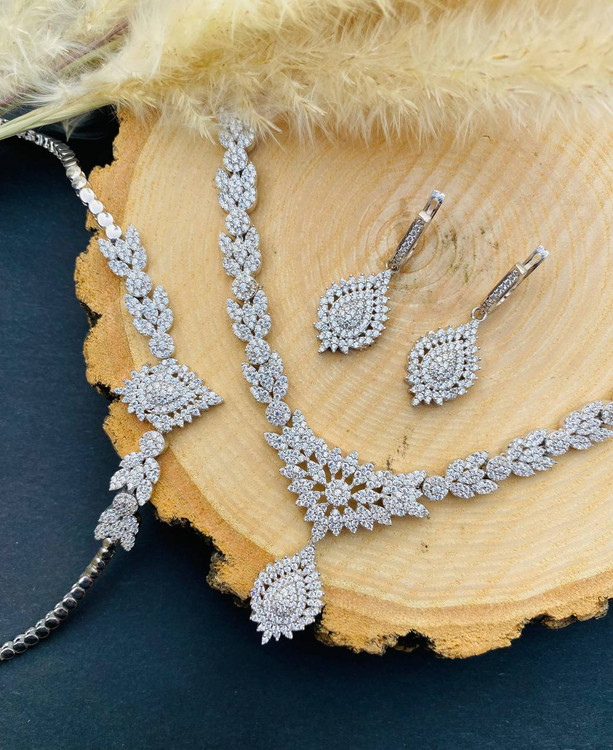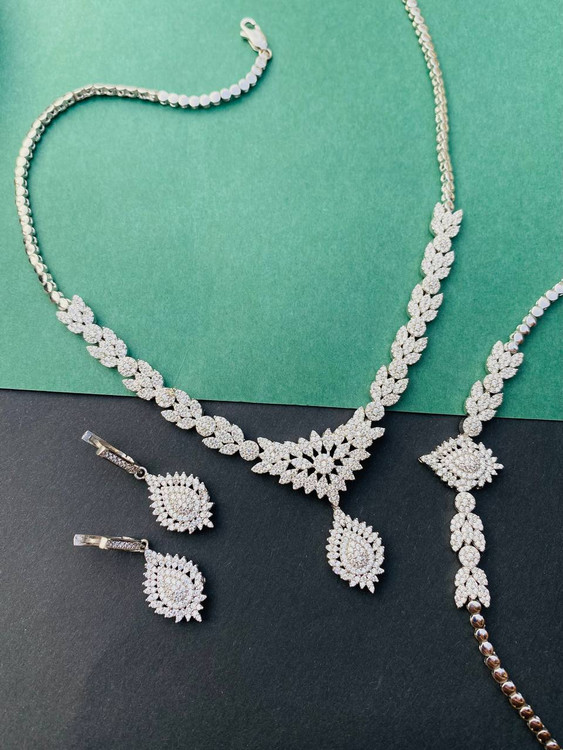 سرویس مجلل نقره جواهری زنانه کد 60031