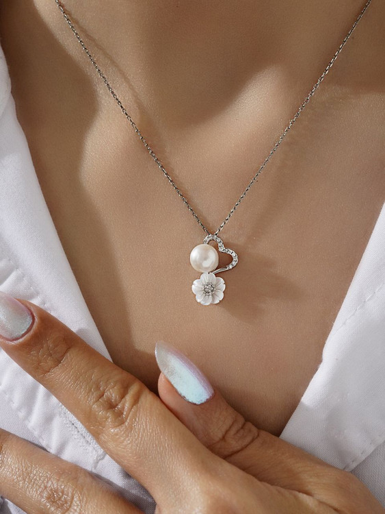 گردنبند صدف و مروارید وارداتی زنانه نقره کد 20324