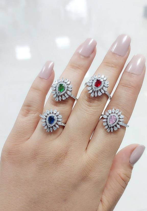 انگشتر سنگ رنگی جواهری نقره زنانه کد 10815