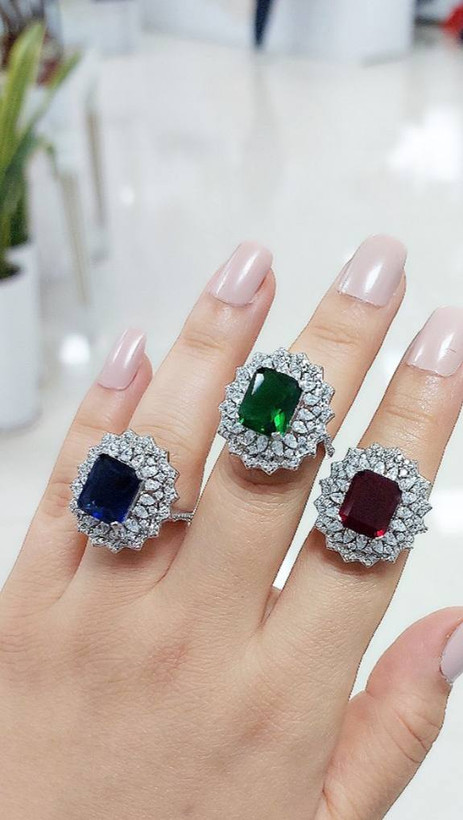 انگشتر سنگ رنگی جواهری نقره زنانه کد 10821