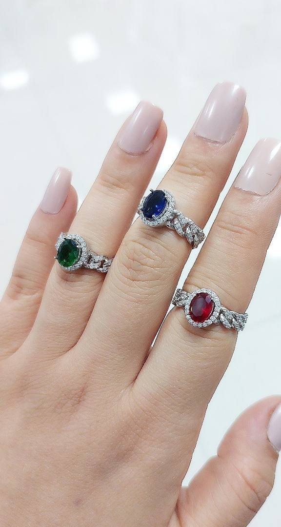 انگشتر سنگ رنگی جواهری نقره زنانه کد 10824