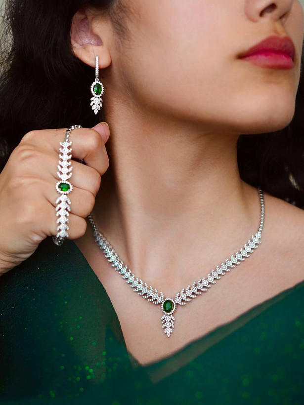 سرویس زمرد نقره جواهری زنانه کد 60500
