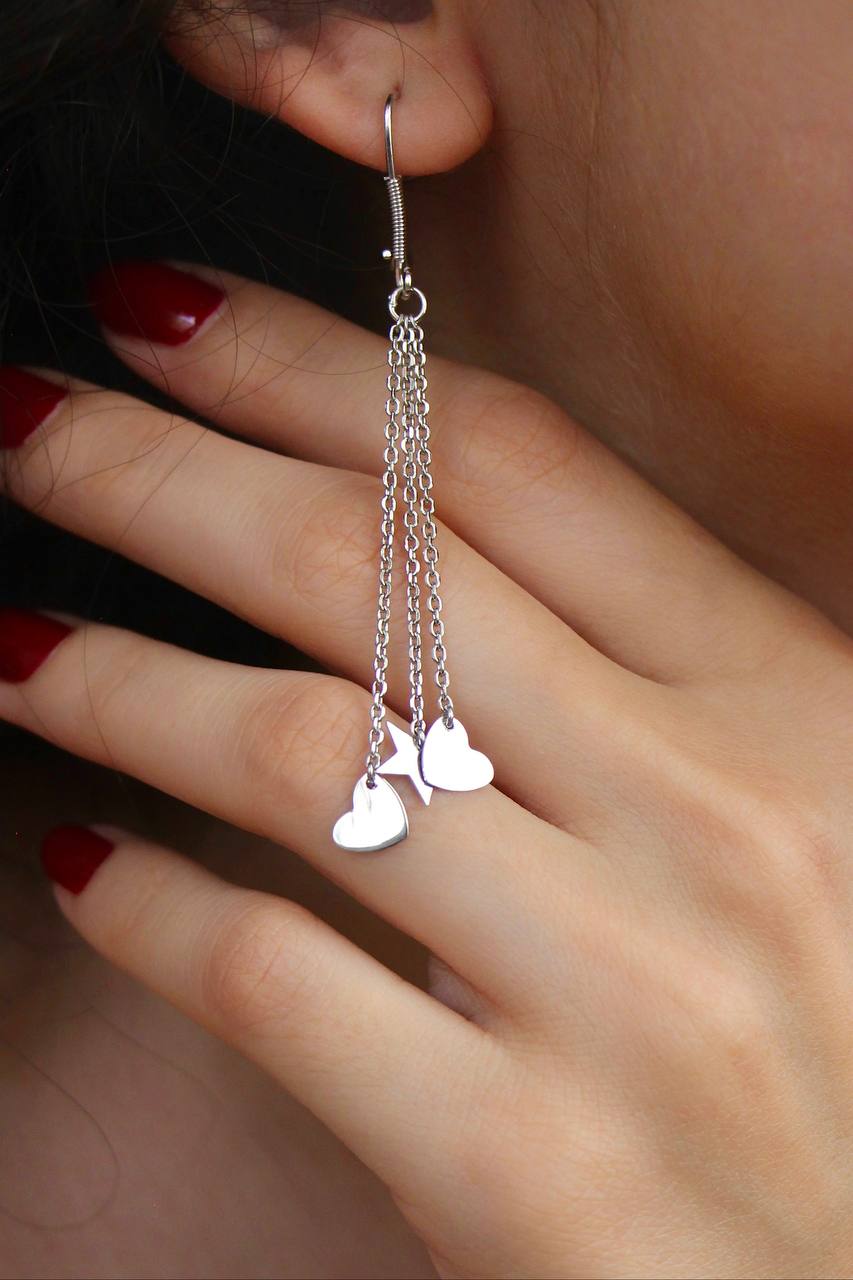 گوشواره آویز قلب و ستاره نقره زنانه کد 0126