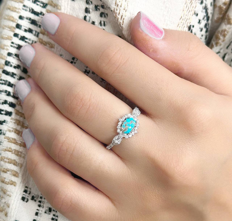 انگشتر فیروزه اصل نیشابوری نقره زنانه کد 11008
