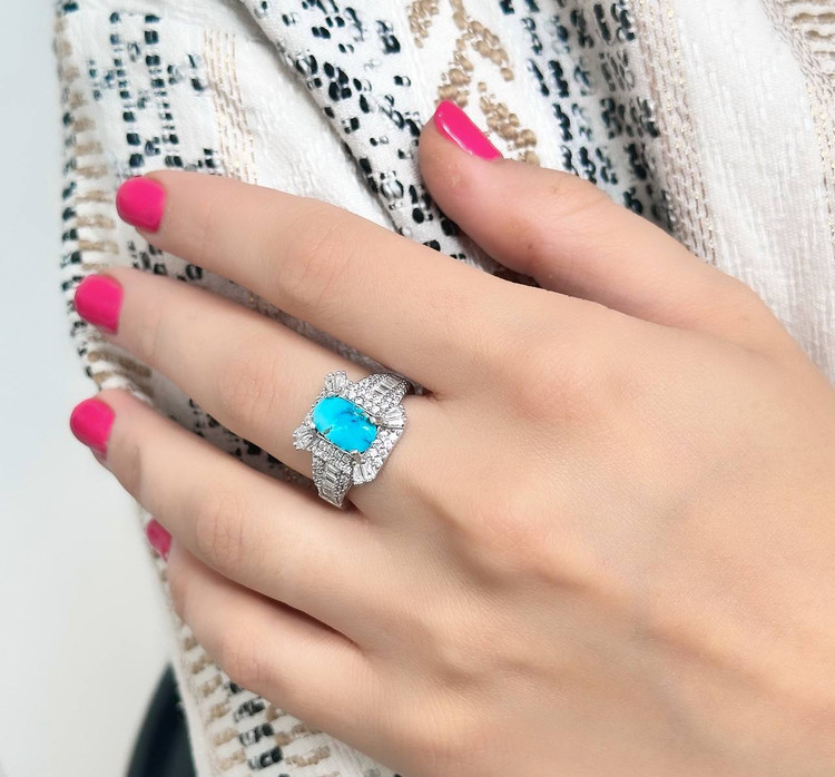 انگشتر فیروزه اصل نیشابوری نقره زنانه کد 11031