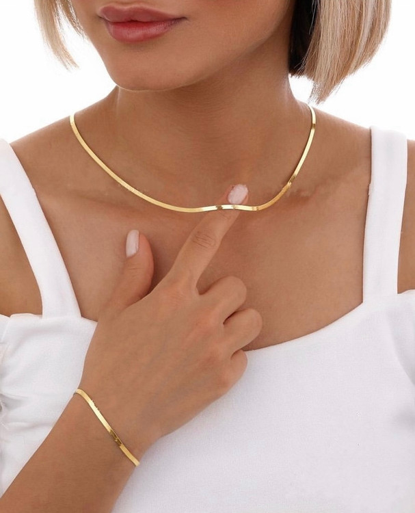 ست گردنبند و دستبند هرینگبون ماری ایتالیایی نقره ۴٠ سانت کد 20573