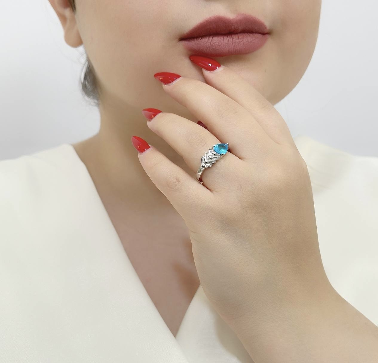 انگشتر سنگ رنگی جواهری نقره زنانه کد 11133