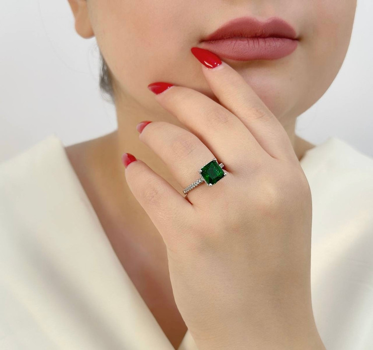 انگشتر زمرد جواهری نقره زنانه کد 11188