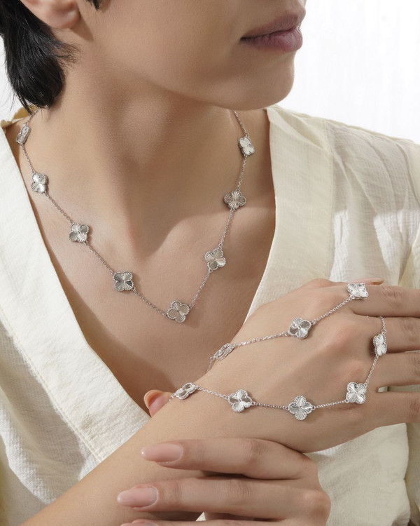 گردنبند وارداتی ونکلیف ١٠ گل جواهری نقره کد 20646