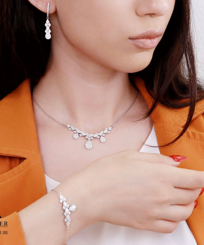 سرویس زنجیری نقره جواهری زنانه کد 60061