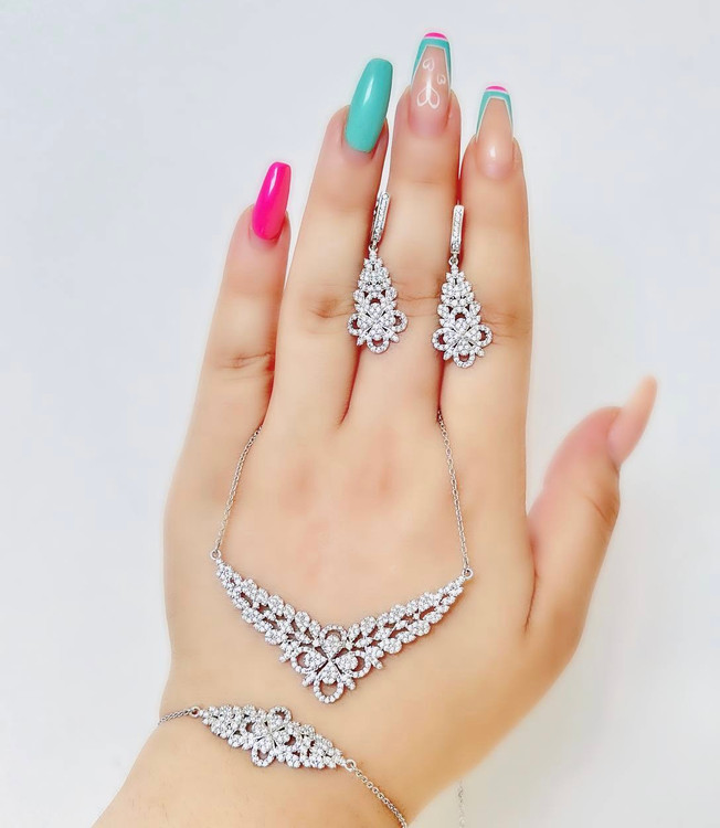 سرویس زنجیری نقره جواهری زنانه کد 60069