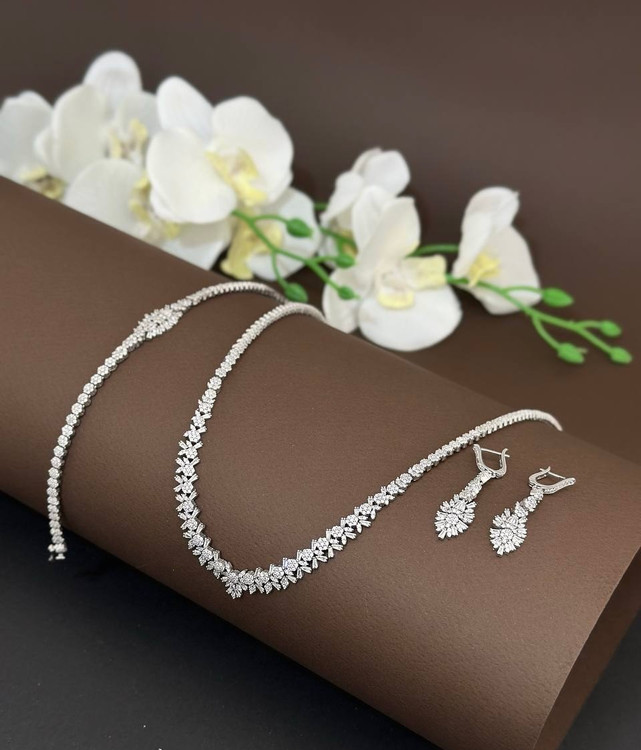 سرویس نقره جواهری زنانه کد 60763