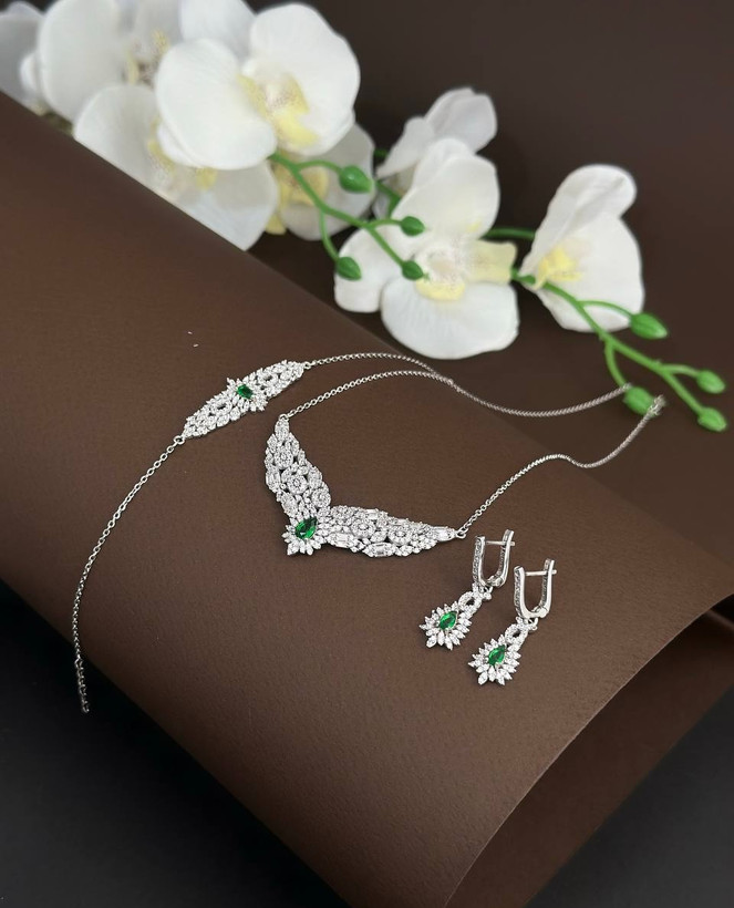 سرویس نقره زمرد جواهری زنانه کد 60767