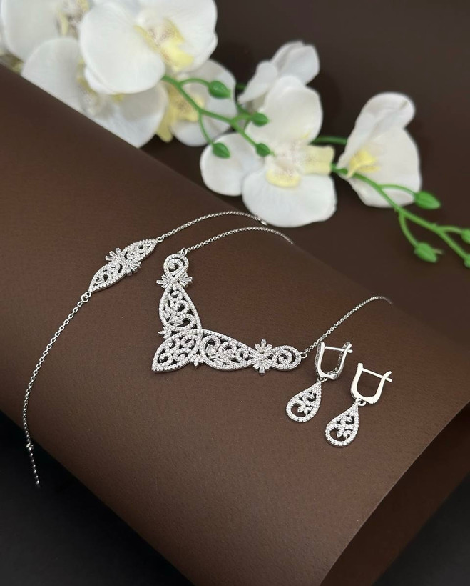 سرویس نقره جواهری زنانه کد 60768